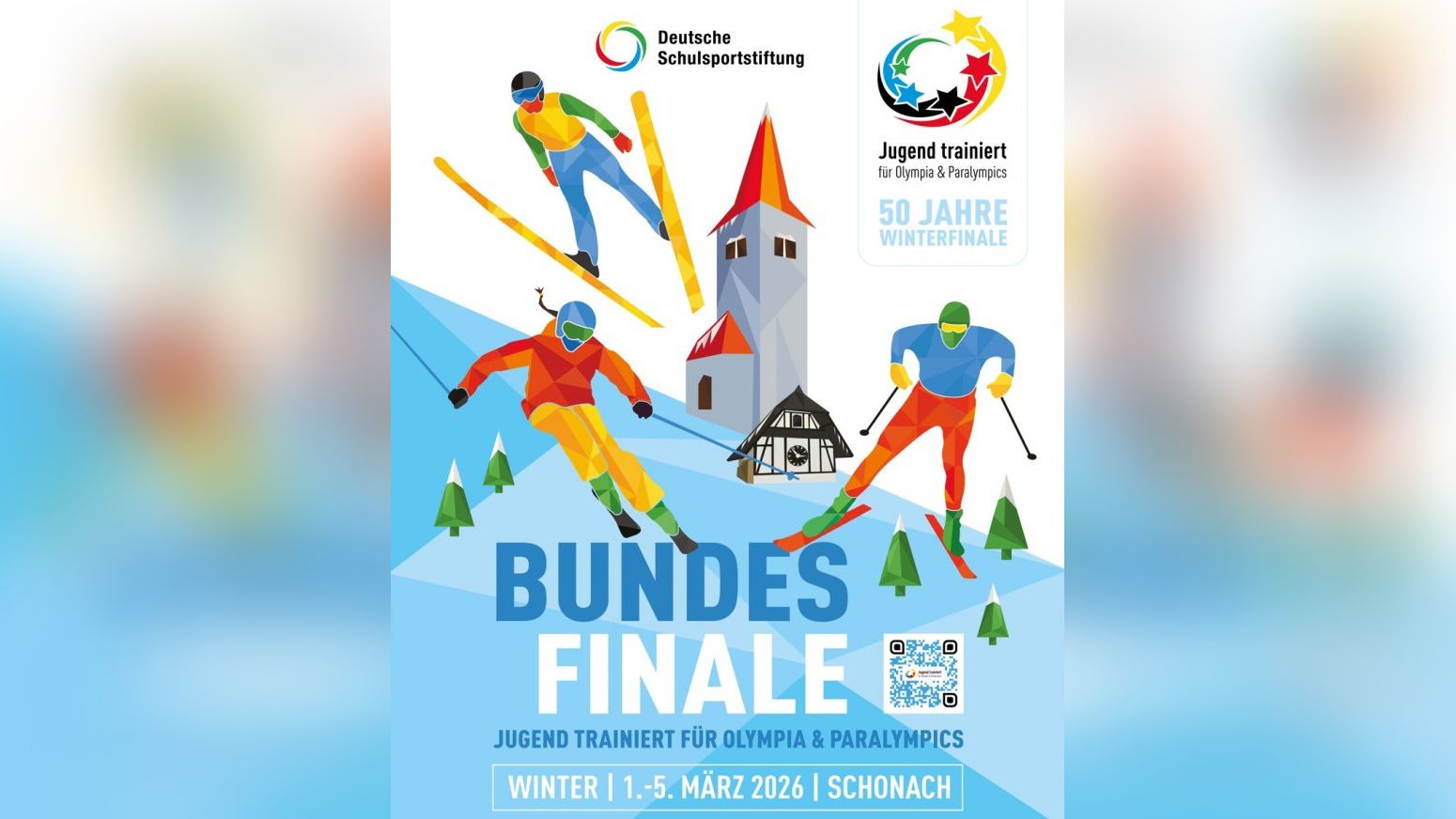 Vom 1. bis 5. März 2026 treffen sich ca. 750 Schülerinnen und Schüler aus über 100 Schulteams aus ganz Deutschland in Schonach, um die Bundessiegerinnen und Bundessieger in den Sportarten Skilanglauf, Skispringen, Ski alpin und Para Ski nordisch zu ermitteln.